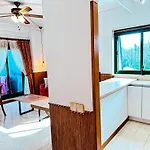 Ez az 50 m^2-es apartman minden szobában tartalmaz erkélyt és síkképernyős műholdas TV-t.